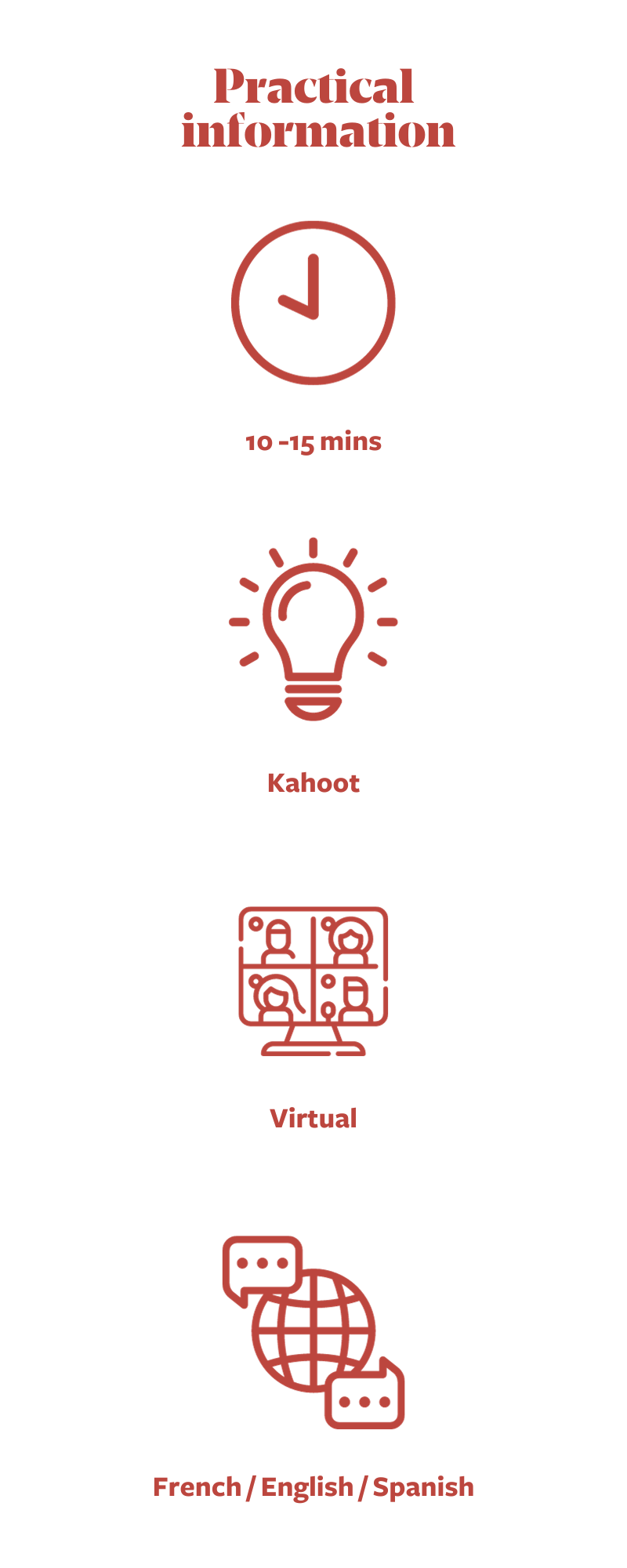 ⭐ A digital quiz with 10 to 15 questions to raise your teams' awareness in a fun way on the Gender Equality topic of your choice, with the option of including a question customised to your company.
